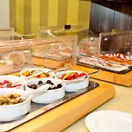 Gästerna kan testa en stor frukostbuffé varje dag.